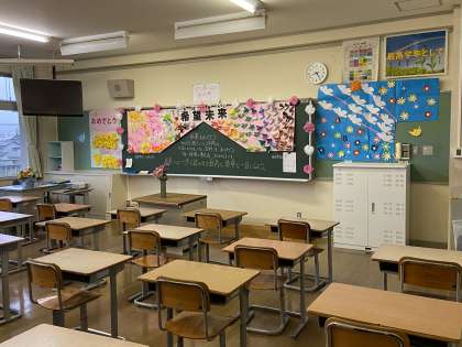 卒業生のみなさんが旅立った教室で、今日の卒業式を振り返っています。小学校生活の集大成、まとめの日として臨んだ今日、みなさんはよくやり遂げた、よくがんばったと感慨深い気持ちになります。同時に、今日までみなさんと過ごした2年間の数多くの出来事が思い出されます。みなさんと笑い合った日、学んだ日、悩んだ日、悲しんだ日、喜んだ日、楽しんだ日、どれもが先生のかけがえのない宝物です。ありがとう。