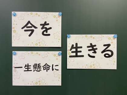 みなさんを指導することはもうありませんが、最後の学活で伝えた、絶対に「生きる」ということ、「今を生きる」「一生懸命に生きる」ということ、一人一人に渡した手紙、心の片隅にそっと置いてくれたら先生は嬉しいです。