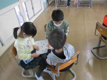 星が昨日の帰りにたまりました。そのため、1時間目のご褒美集会は先生主催で行いました。最初の漢字カード合わせでは、グループの友達と今まで学習した漢字を思い出してホワイトボードに書き込み数を競いました。