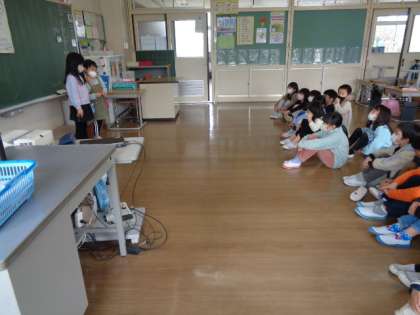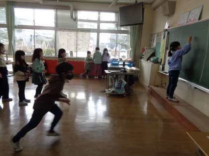 今日はごほうび集会その2で、青団と黄団が考えた「チョークリレー」と「宝探し」をしました。大きな声で応援しながら楽しんでいました。1年生も残すところあと1日です。みんなで修了式を迎えたいです。