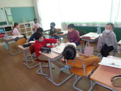 【5年生】教えて、あなたのこと 公開日 2022/04/08 更新日 2022/04/08 5年生 国語の授業開きをしました。銀河の詩を音読し、言葉の準備体操として友達にインタビューをし、聞いたことを発表しました。