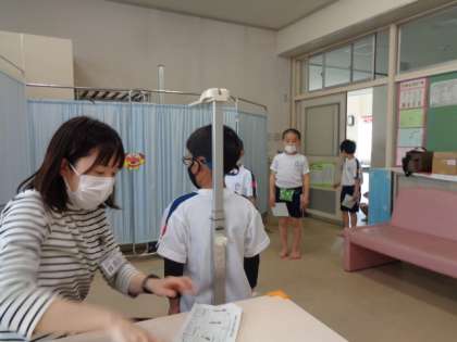 【2年生】発育測定 公開日 2022/04/11 更新日 2022/04/11 2年生 保健室で身長、体重、爪切りチェックをしてもらいました。「お願いします」「ありがとうございました」の挨拶がきちんとできた子が多かったです。