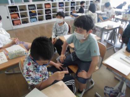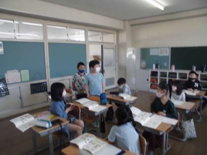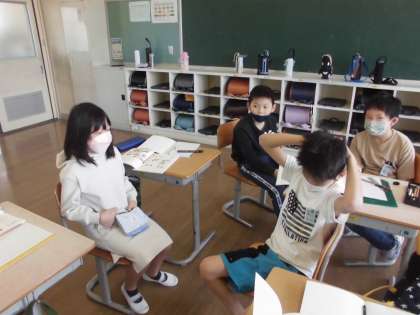 国語の学習では、友達との一緒の所を見つけました。ペアやグループでコミュニケーションを取って同じ所を探していました。