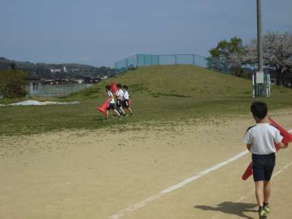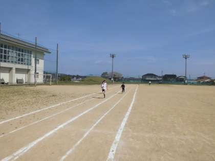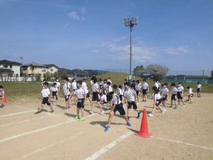 体育の時間では、50メートル走をしています。前を向いて走ったり駆け抜ける点に気を付けて走りました。最後まで全力で走っている子供たちでした。後片付けでは、積極的に働く姿もあり、とても素敵な姿でした。