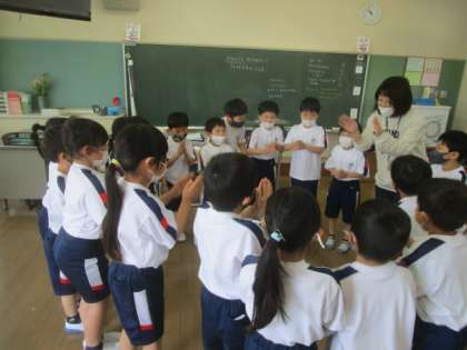 音楽の時間には、歌に合わせて体を動かしたり、歌ったりしました。