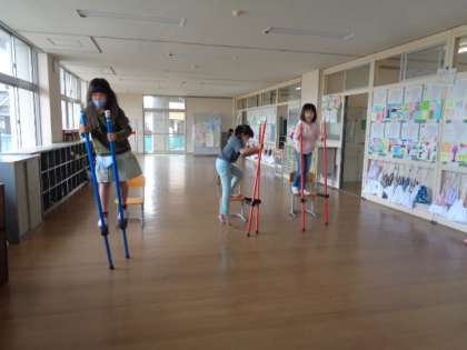 【2年生】楽しい休み時間 公開日 2022/04/21 更新日 2022/04/21 2年生 自由に遊べる休み時間は子供たちは大好きです。先週から竹馬に挑戦している子供たちも毎日の特訓の成果で随分乗りこなせるようになってきました。休み時間の終わりのチャイムに「え!もう?早くない?」と残念そうでした。楽しいことをしている時間はあっという間ですね。