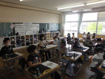 【4年生】書写 毛筆 公開日 2022/04/22 更新日 2022/04/22 4年生 今日の書写からは、教務の先生が担当しています。「林」の二回目ということもあり、前回よりもとめやはらいに気を付けて書いていました。一生懸命に書いた子供たちの作品をぜひ、ご覧ください。