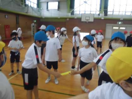 今日はリレーで走る順番でバトンパスの練習をしました。バトンをもらう位置、渡す手に気を付けて練習していました。かけ声も出ていて結束力が高まっている姿が見られます。