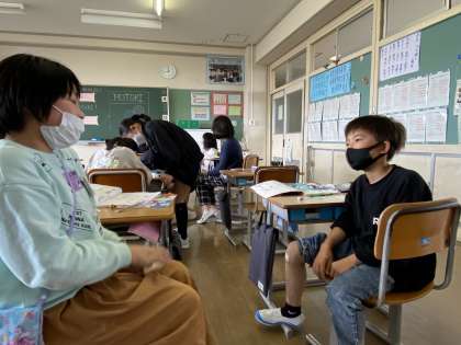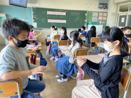 昨日までの様子です。外国語科の学習では、名前のつづりを尋ねたり、好きな食べ物やスポーツを尋ねたりする表現に慣れ、どんどん英語をつかっていました。