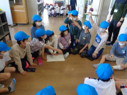 【3・4年生】 台風の目 公開日 2022/05/02 更新日 2022/05/02 3年生 今朝、中学年で集まり、各色団で台風の目のペア決めを行いました。3年生は中学年になり、台風の目に参加できることをとても楽しみにしています。4年生は、3年生を引っ張っていく立場になり、進行やアドバイスを一生懸命していました。どの色団も、仲間とともに協力し、本番で全力が出し切れるよう、練習していきます。