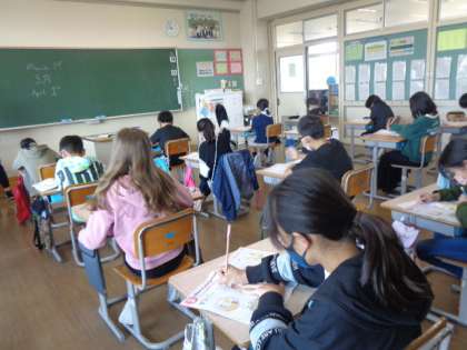 【5年生】外国語の学習 公開日 2022/05/02 更新日 2022/05/02 5年生 ALTの先生と一緒に歌を歌ったり、動画を見たりしながら楽しんで学んでいます。今日は、誕生日の言い方を学びました。
