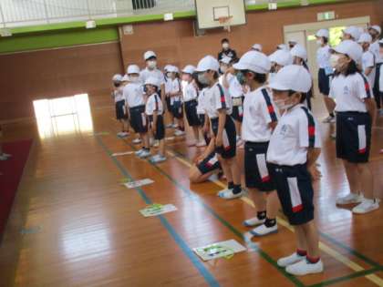 【1年生】応援練習 公開日 2022/05/06 更新日 2022/05/06 1年生 色団ごとに応援練習を行いました。初めての応援に戸惑っている1年生に、6年生が近くに来てくれて、優しく教えてくれました。だんだん大きな声を出して応援できるようになってきました。教室に戻ってきて、「もう応援歌を覚えたよ」とうれしそうに話す姿も見られました。