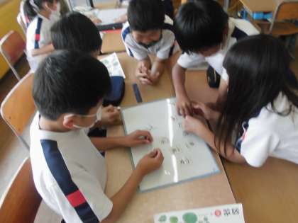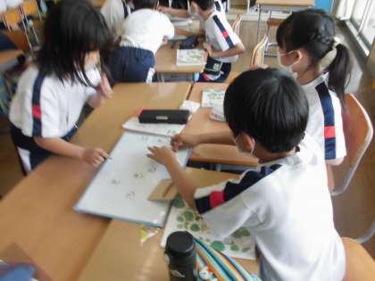 国語の学習では、漢字の組み立てを学習しています。へんやつくりのほかに、かんむりやたれ等から成り立っていることをグループ学習を通して学びました。進んで取り組む姿は素晴らしかったです。