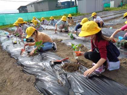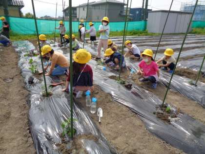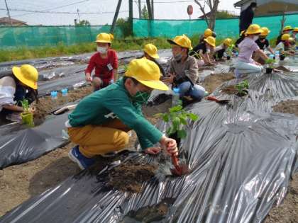今日は自分が選んで家の人と用意した苗を学校農園に植えました。先日のミニトマトの経験を生かして、苗ポットから上手に苗を取り出すことができました。どの子も自分の野菜が元気に育ってくれることを心から願っています。うまく根付いてくれますように!保護者の皆様、苗の準備をありがとうございました。