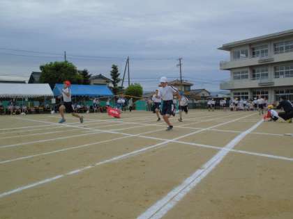 運動会の様子です。100メートル走では、一人一人が自分の持っている力を出し切り精一杯走りました。全力で取り組む姿はとてもかっこよかったです。