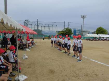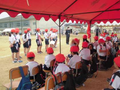 運動会終了後、団毎に振り返りをしました。 団四役が感謝の言葉を述べたり、最後の応援を行ったりしました。