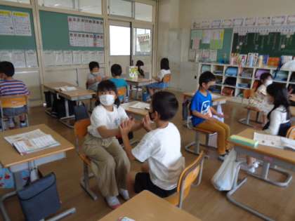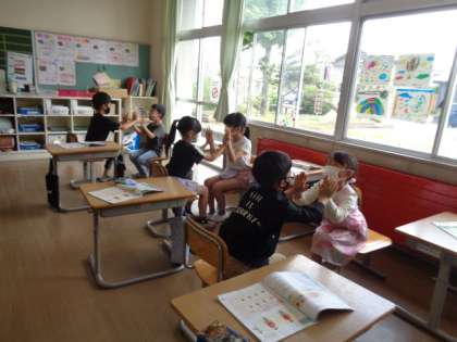 2拍子や3拍子のリズムでリズム遊びをしました。歌のリズムに乗って楽しくリズム打ちすることができました。