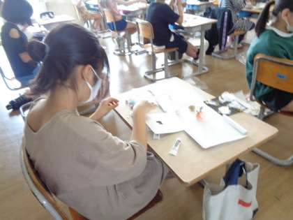 【5年生】のぞいてみると 公開日 2022/05/19 更新日 2022/05/19 5年生 窓をのぞくとどんな景色や世界が広がるか、子どもたち一人一人が想像力を働かせて作り上げています。今日は、紙粘土で箱に入れる小物や飾りを作りました。