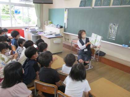 【2年生】読み聞かせ 公開日 2022/05/20 更新日 2022/05/20 2年生 朝の会に、ボランティアの方による読み聞かせがありました。とてもすてきな読み聞かせに子供たちは夢中。本を読む楽しさを味わうことができました。