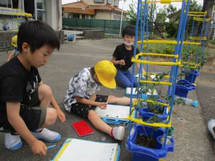 【2年生】生活 公開日 2022/05/20 更新日 2022/05/20 2年生 生活の時間は、ミニトマトと自分の育てている野菜を観察し、野菜日記を書きました。以前観察したときよりも大きくなったことや、花が咲いていたことに気づき、野菜の成長を喜んでいました。