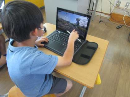 明日行く予定の校外学習に向けて、行く場所の施設を調べました。みんな明日をとても楽しみにしています。