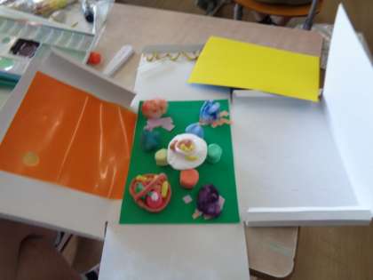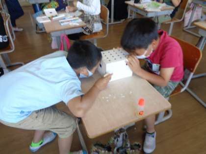 いよいよ箱の中が完成してきました。出来上がった友達の作品をのぞいています。