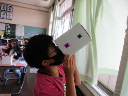 1組も「のぞいてみると」の学習を始めました。今日は箱の組み立てやセロハン貼り。手際よくつくったり、誰か困った人がいたらそっと手伝ったりするすてきな姿も見られました。子供たちは、のぞいてみたときの光の入り方に目を輝かせているようでした。