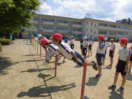 体育では、鉄棒運動やハードル走に取り組んでいます。