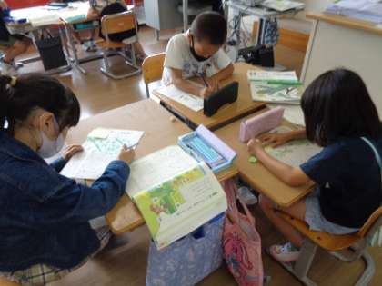 6月に入り、待ちに待った席替えをしました。今日は、グループの友達と互いの観察日記を交換して読み合い、「分かりやすいね」「観察言葉がたくさん使われているね」とお互いの上手に書けているところを付箋に書いて伝え合いました。よいところをお互いに真似し合い、ますます観察名人になってほしいと思っています。