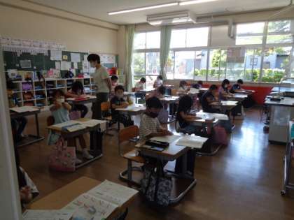 今日は漢字の「はらい」をきれいに書くコツを学習しました。よい姿勢に気を付けて、丁寧に書いていました。