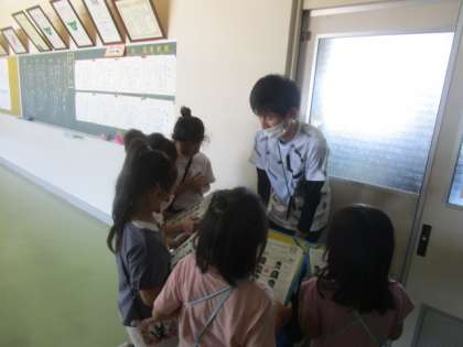 【1年生】せんせいとなかよし2 公開日 2022/06/02 更新日 2022/06/02 1年生 「先生の名前シールたくさん集めたよ!」と、たくさんの子供たちが嬉しそうに報告してくれました。 友達と誘い合ったり、学校中を歩いてみたりしながら、先生との出会いを楽しんでいました。