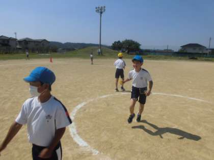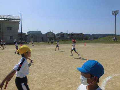 グラウンドで、リレーのまとめをしました。一生懸命に走る、「はい!」と言われたら手を出すなど今まで学んだことを発揮していました。