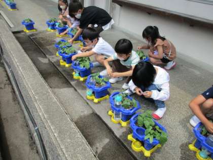 【1年生】あさがおのお世話 公開日 2022/06/03 更新日 2022/06/03 1年生 生活科では、だんだん大きくなってくあさがおのお世話について考えました。子供たちから「水を多くあげる」「肥料をあげる」などの意見が出たので、週末を迎えることもあり、いつもより多めに水をあげたり、追肥をしたりしました。