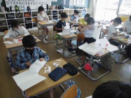 カードで伝える気持ちの制作を始めました。絵や仕掛けなど自分が作りたい部分から、制作しています。完成が楽しみです。片付けや掃除も進んで行っていました。ありがとう。