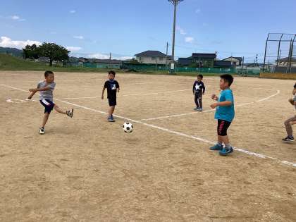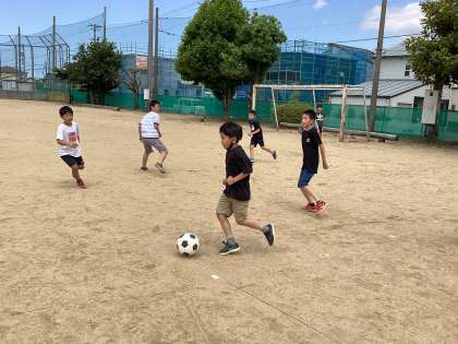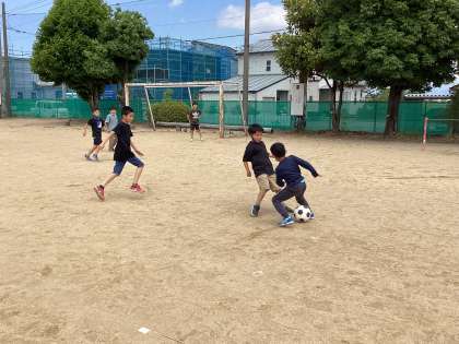 子供たちは休み時間に外で元気に遊んでいます。おにごっこやサッカーをして遊んでいます。