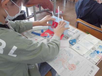 子供たちは、家庭から必要な材料を持ってくるなどして、楽しく作品作りを行っています。