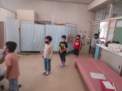 検診を受ける保健室では静かに自分の番を待っていました。検診が終わったら、「ありがとうございました」と言って保健室を出る姿もすてきでした。