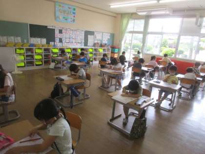 【1年生】算数テスト2 公開日 2022/06/17 更新日 2022/06/17 1年生 初めての算数テストでは、テストの受け方をしっかりと聞いてからテストを受けていました。問題をよく読んだり、見直しをしたり、落ち着いて取り組むことができました。