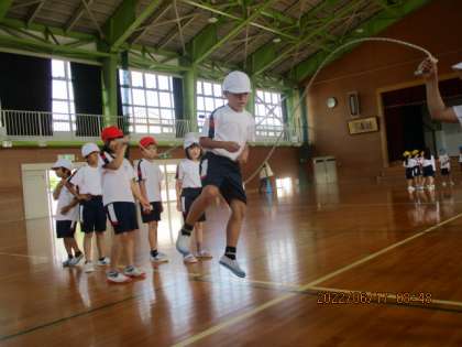 【2年生】体育 公開日 2022/06/17 更新日 2022/06/17 2年生 体育の時間は大縄跳びで8の字跳びをしました。去年を思いだし、子供たちは上手に跳ぶことができていました。今年は去年よりも上手に跳べるといいですね。