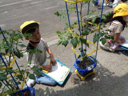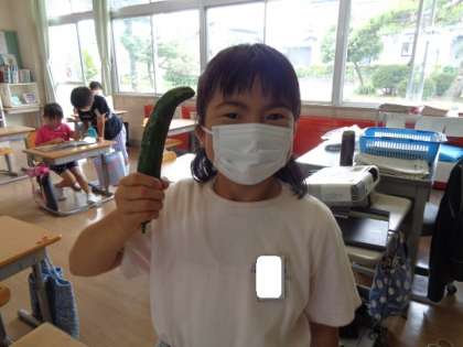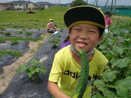今日も野菜日記を書きました。ミニトマトの実は、なかなか赤くなりません。子供たちはまだかまだかと心待ちにしています。農園の方ではキュウリが実を付け始めました。収穫できた子は大喜びです!家で美味しく食べてください。