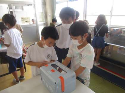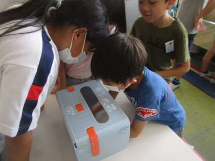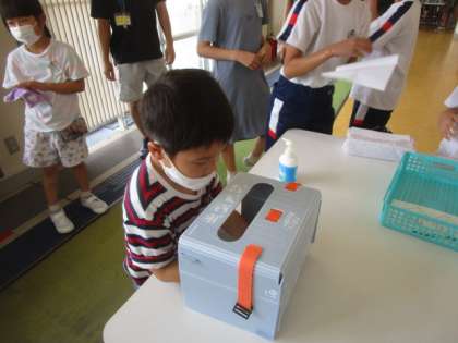 手洗い実験会では、自分たちの手洗いで、どれだけばい菌を落とせるのか実験をしました。ライトを当ててみると、まだ爪の間や指の間をきちんと洗えていないことが分かりました。実験を通して、子供たちも手洗いの大切さを感じたようでした。
