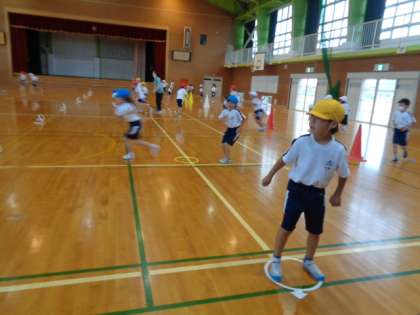 【2年生】体育 公開日 2022/06/22 更新日 2022/06/22 2年生 大縄大会に向けて、連続跳びを練習中です。リレーでは、ミニハードルや段ボールをジャンプしながらバトンパスリレーをしました。暑い中でしたが一生懸命頑張っていました。
