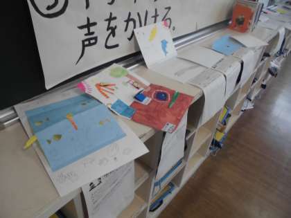 【4年生】気持ちを伝えるメッセージカード 公開日 2022/06/22 更新日 2022/06/22 4年生 今週の図工では、気持ちを伝えるメッセージカードが完成する人が増えてきました。仕掛けを工夫したり相手が好きなものをかいたりと思いを伝えるメッセージカードができました。
