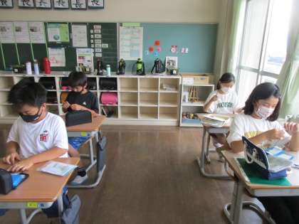 家庭科の授業で、玉結びの特訓をしました。はじめは難しそうにしていた子供も、最後にはきちんとできるようになっていました。次週、さらに進めていきます。