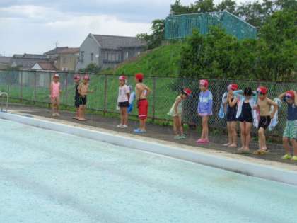 【2年生】初プール! 公開日 2022/06/27 更新日 2022/06/27 2年生 暑い日が続いています。今日は待ちに待ったプールの日でした。プールに入りぐるりと回るだけでしたが、子供たちはニッコニコでした。