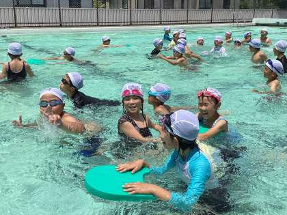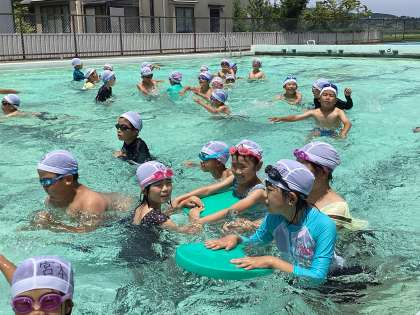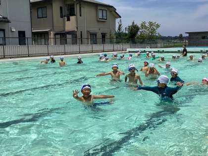 今日はプールに顔をつけたり、頭までもぐったりしました。みんなで進行方向をそろえて走ることで水の流れも楽しみました。