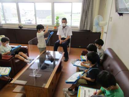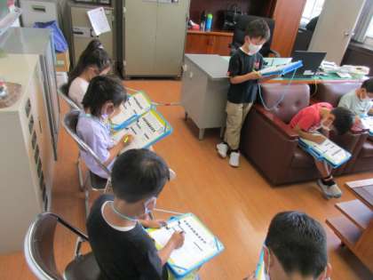 【1年生】インタビュー2 公開日 2022/06/28 更新日 2022/06/28 1年生 校長先生にお話を聞いた子供たちです。みんなが楽しく学校生活を送れるように考えたり、地域の方に協力してもらえるようにお願いしたりと、神保小学校のことをいつも考えてくださっていることが分かりました。お話を聞きながら、一生懸命メモをとっていました。