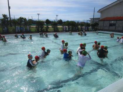 子供たちは、6年生さんと楽しく遊べたおかげで、「プール楽しい!」と笑顔で水に親しんでいました。