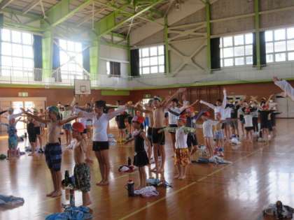 1年生と一緒にプールに入りました。