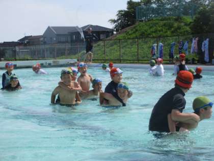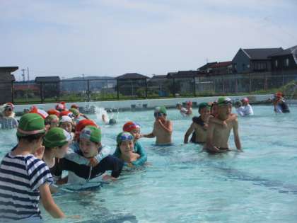 1年生と一緒にプールに入りました。